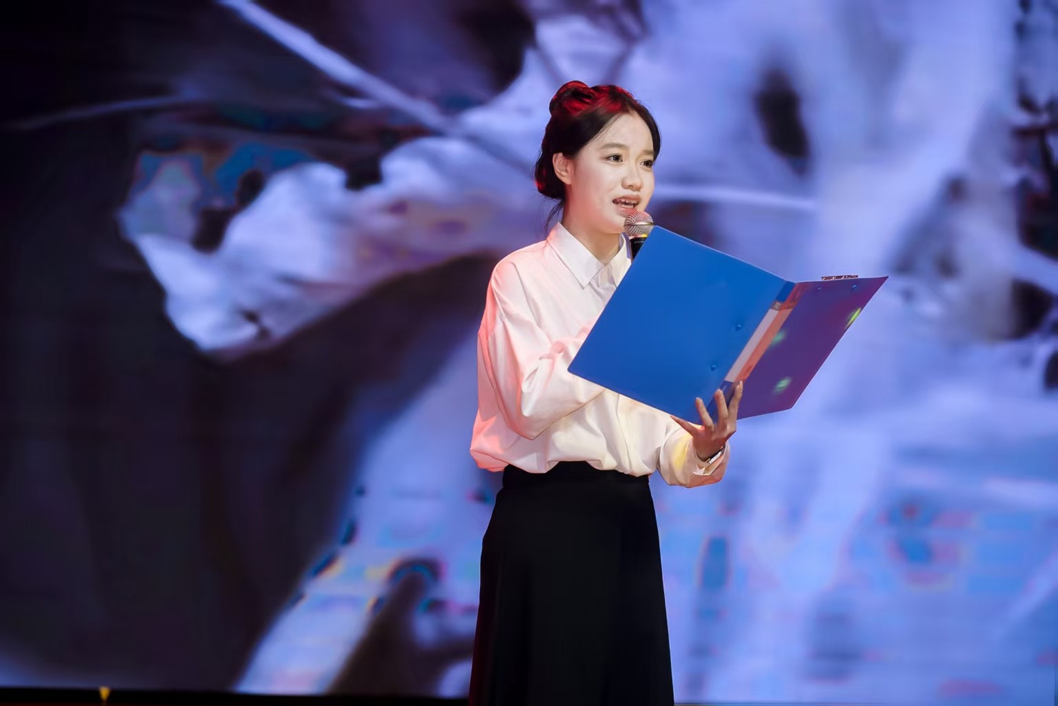 活动在艺术教育学院学生铿锵有力的诵读声中拉开帷幕。肖姚玉焓、皮海燕、向欣三位表演者通过情景朗诵的艺术形式,生动再现了邱少云烈士在烈火中永生的英雄壮举。学生们以极具张力的舞台表现,将"纪律重于生命"的崇高精神诠释得淋漓尽致,为整场活动奠定了庄重肃穆的基调。